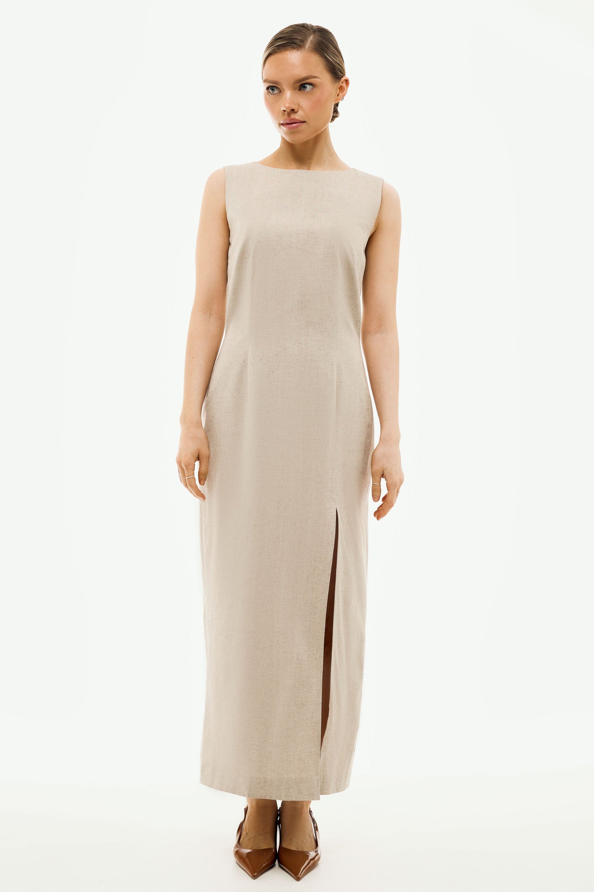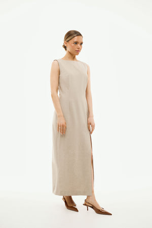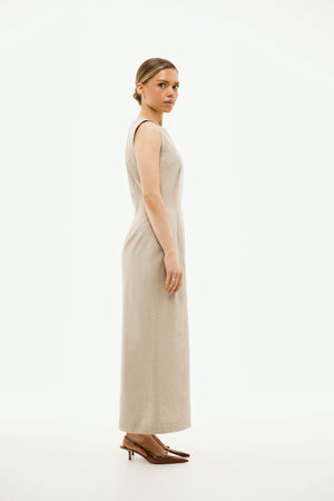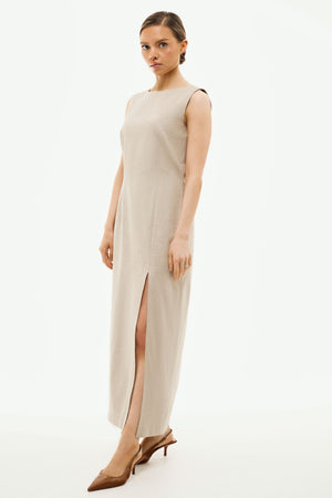 The Michelle dress is a refined long sheath silhouette that captures the essence of understated elegance. Made from premium organic cotton, it delivers a soft, breathable touch for all-day comfort. The subtle side slit adds a modern twist, enhancing the dress's sophisticated appeal. With its versatile length, the Michelle dress transitions effortlessly from casual daytime looks to evening attire, making it a timeless addition to any wardrobe.