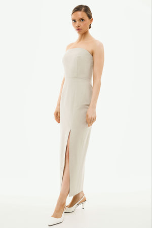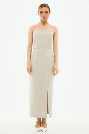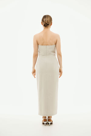The Isabella dress is designed in a classic and elegant style, seamlessly blending timeless sophistication with contemporary charm. Crafted from high-quality organic cotton, it offers a soft, breathable feel that ensures all-day comfort. Featuring open shoulders and a graceful side slit, this dress effortlessly combines refinement with a touch of modern flair. Its versatile length makes it perfect for both day and evening occasions. Pair it with our Double-Breasted Blazer for a chic, polished look.