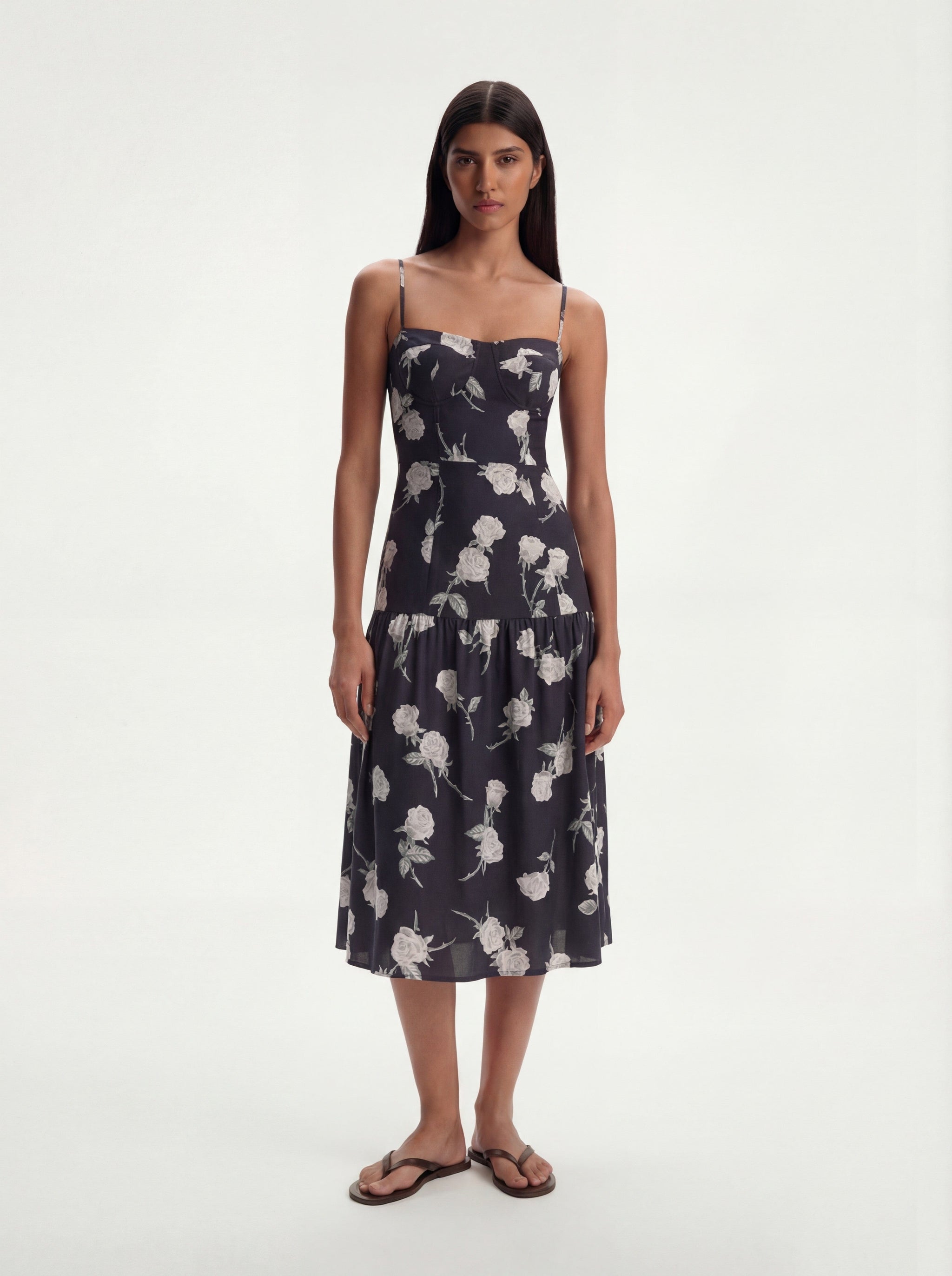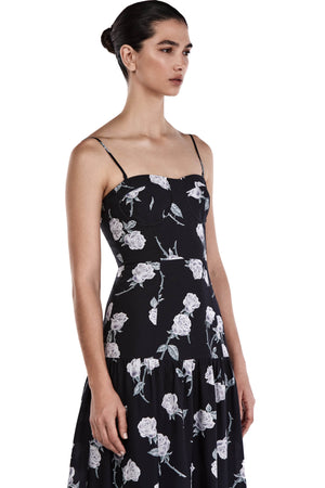 Juliette Roses Print Midi Dress in Coal Black